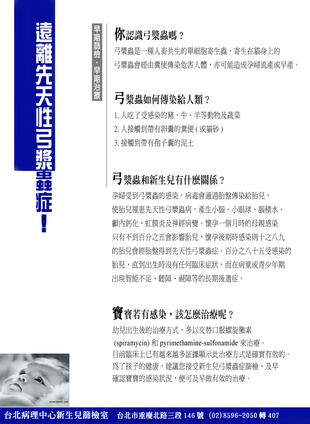 • 新生兒篩檢弓漿蟲抗體IgM檢測衛教單  2008/08/13